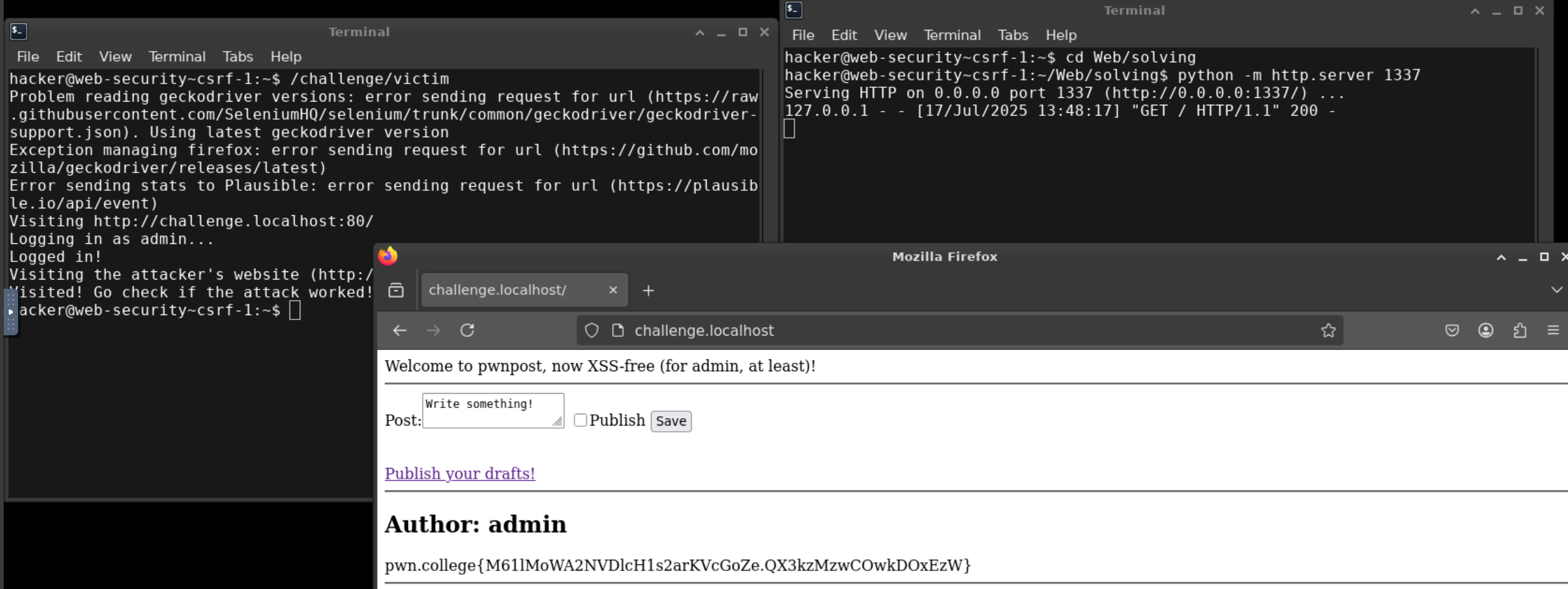 之后再运行/challenge/victim,最后刷新浏览器就可以了,也是成功拿到了flag