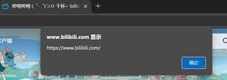 拆解一下,alert没什么好说的,alert的参数就是window这一大串,这个url意思就是执行冒号后面的javascript代码,当点击回车的时候,由于当前位于b站的首页,浏览器就会显示b站的域名,如下图
