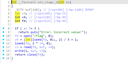 可以观察到每个函数只输出一部分flag,并且会检查参数是否等于stage编号