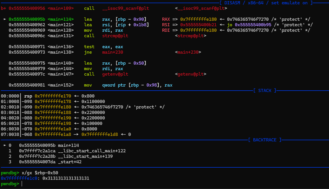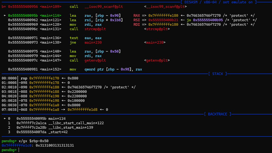 if (name[1] == '\0') { /* The name of the variable consists of only one character. Therefore the first two characters of the environment entry are this character and a '=' character. */ #if __BYTE_ORDER == __LITTLE_ENDIAN || !_STRING_ARCH_unaligned name_start = ('=' << 8) | *(constunsignedchar *) name; #else name_start = '=' | ((*(constunsignedchar *) name) << 8); #endif for (ep = __environ; *ep != NULL; ++ep) { #if _STRING_ARCH_unaligned uint16_t ep_start = *(uint16_t *) *ep; #else uint16_t ep_start = (((unsignedchar *) *ep)[0] | (((unsignedchar *) *ep)[1] << 8)); #endif if (name_start == ep_start) return &(*ep)[2]; } } else { #if _STRING_ARCH_unaligned name_start = *(constuint16_t *) name; #else name_start = (((constunsignedchar *) name)[0] | (((constunsignedchar *) name)[1] << 8)); #endif len -= 2; name += 2;