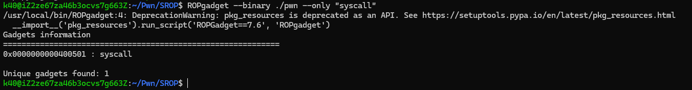 fakeSigFrame=SigreturnFrame() fakeSigFrame.rax=59 fakeSigFrame.rsi=0 fakeSigFrame.rdx=0 fakeSigFrame.rip=syscallAddr
